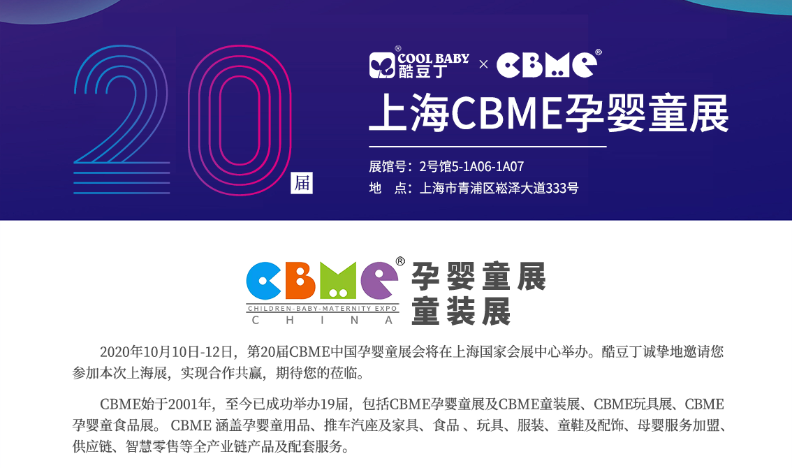 酷豆?。–OOLBABY) 邀請(qǐng)您參加2020上海CBME孕嬰童展