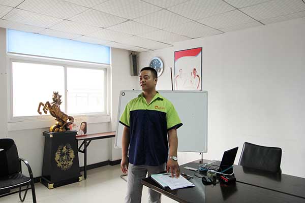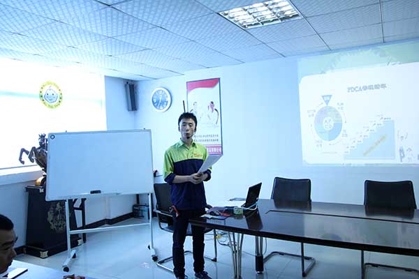 組裝車(chē)間B線班長(zhǎng)趙海濤對(duì)本車(chē)間的全體員工進(jìn)行質(zhì)品培訓(xùn)