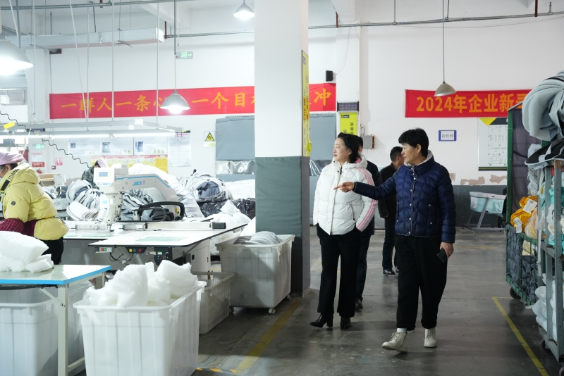 調(diào)研過程中,于軍深入了解酷豆丁的經(jīng)營現(xiàn)狀,聚焦企業(yè)發(fā)展中遇到的困難,同時積極宣導(dǎo)相關(guān)政策,為企業(yè)排憂解難。于軍在董事長張迎年的陪同下,首先來到酷豆丁樣品間,細(xì)致考察公司產(chǎn)品,詳細(xì)詢問2024年酷豆丁的銷售情況。隨后,一行人前往縫紉車間,實地考察生產(chǎn)狀況,了解生產(chǎn)流程、設(shè)備運(yùn)行以及人員工作情況。
