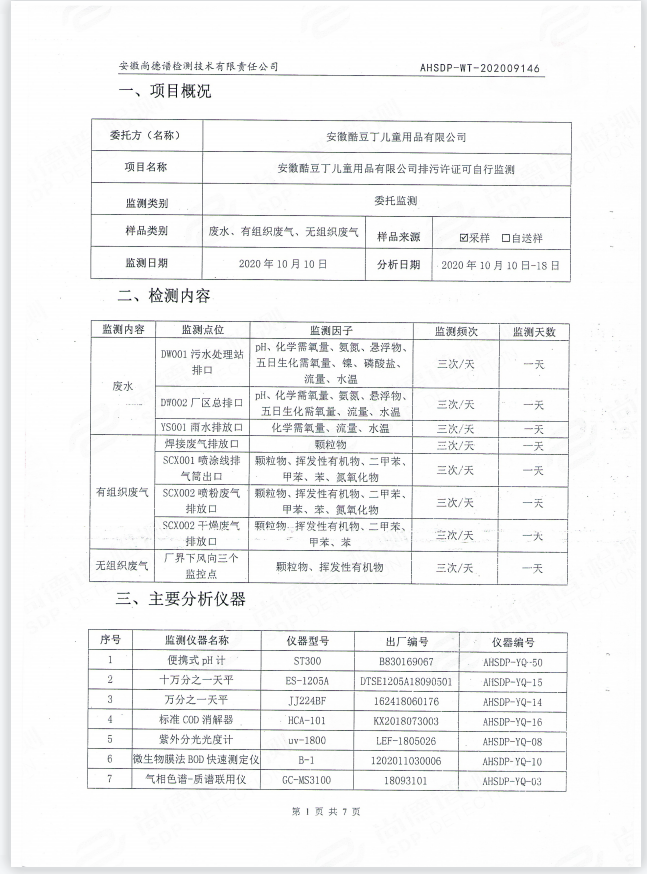 編制部門(mén):安徽酷豆丁兒童用品有限公司安全環(huán)保部??????