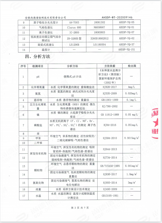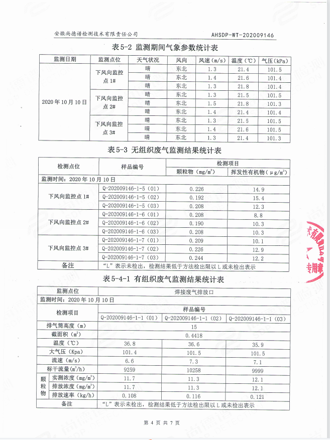 委托監(jiān)測(cè)單位為安徽尚德譜檢測(cè)技術(shù)有限責(zé)任公司,委托監(jiān)測(cè)內(nèi)容有組織廢氣、無(wú)組織廢氣、廢水等。根據(jù)監(jiān)測(cè)結(jié)果可知,公司?2020年度主要污染物排放均達(dá)到現(xiàn)正執(zhí)行的排放標(biāo)準(zhǔn),無(wú)超標(biāo)情況發(fā)生。