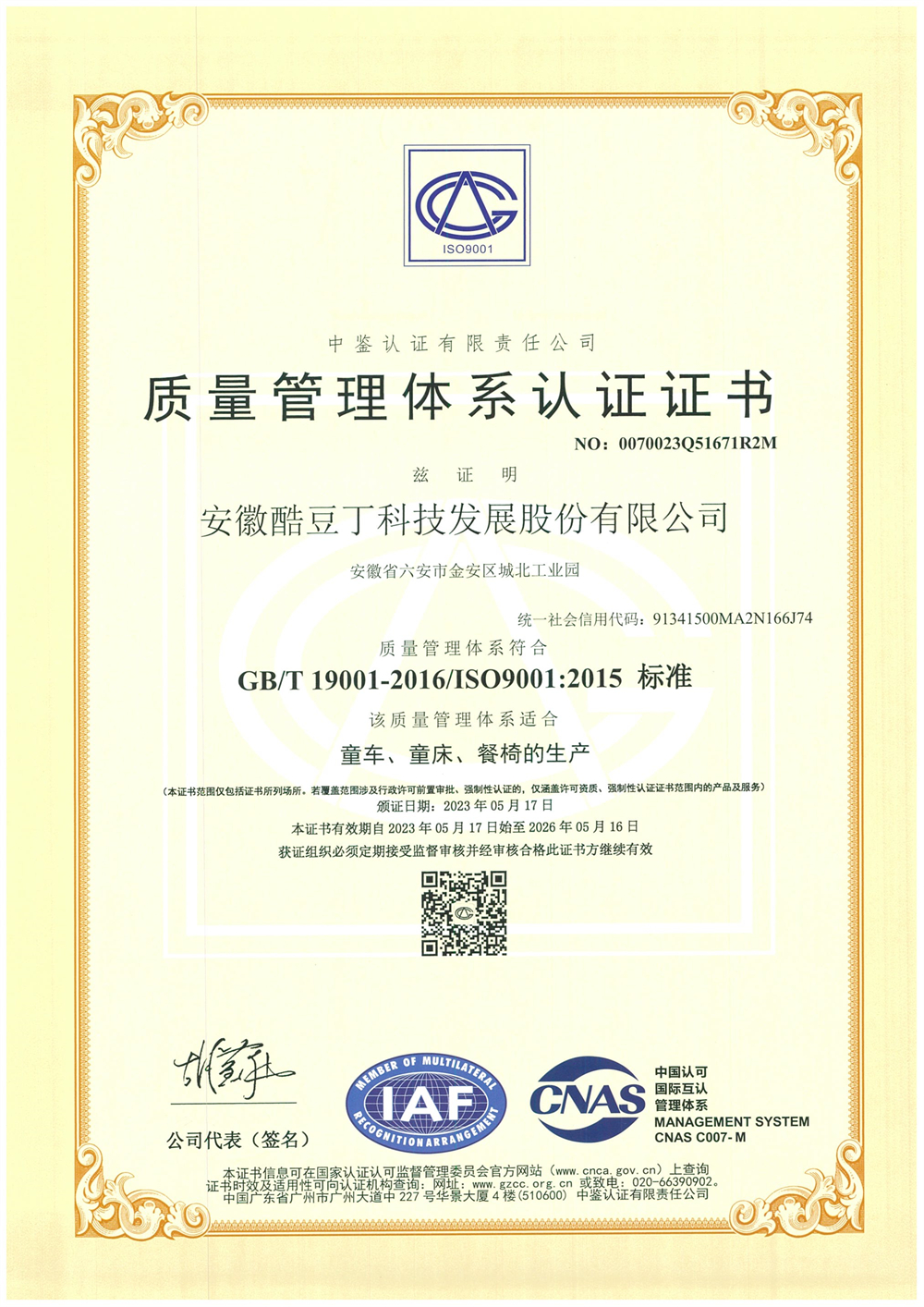 質(zhì)量管理體系認(rèn)證證書