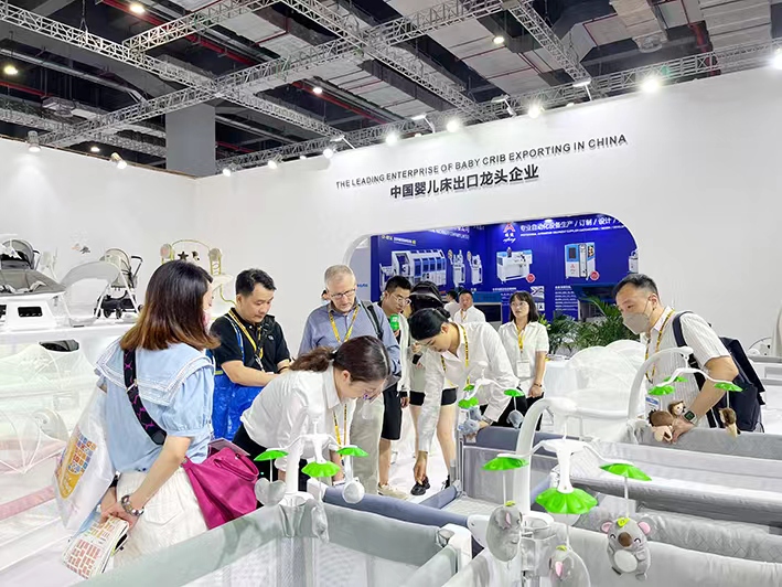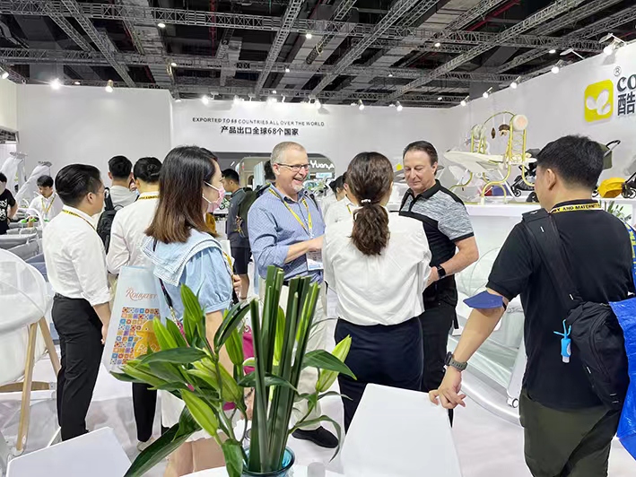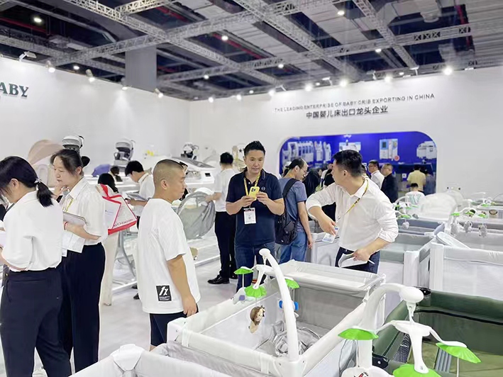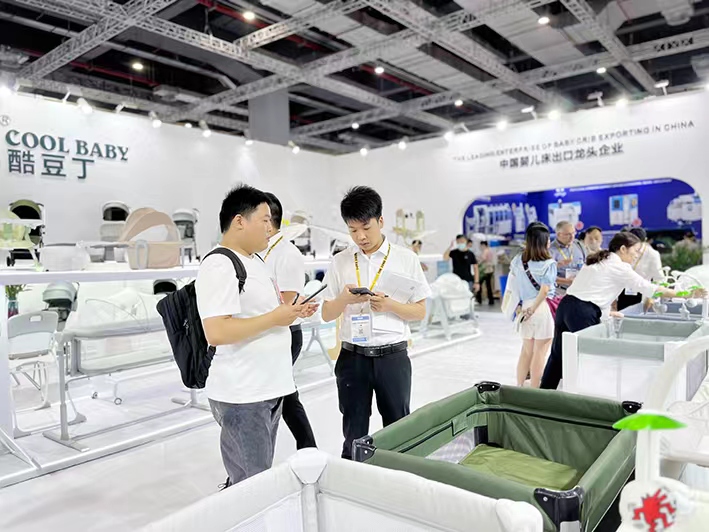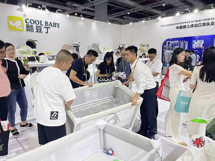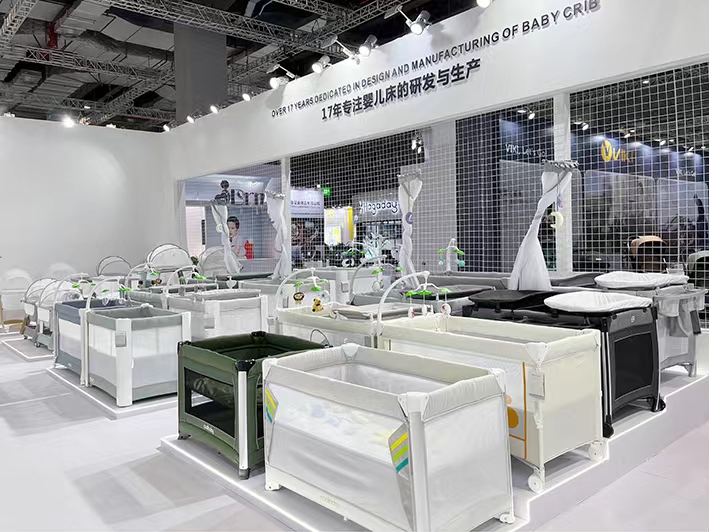 在CBME展會上,酷豆丁攜擁有獨(dú)家發(fā)明專利的一鍵開合式嬰兒床公開亮相,吸引了眾多采購商駐足參觀、溝通交流。