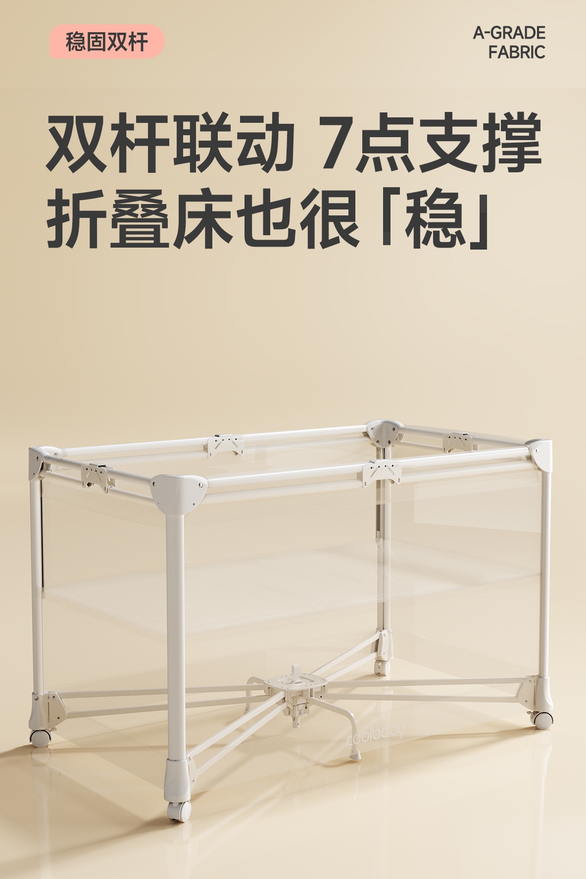 酷豆丁嬰兒床擁有一鍵收折技術(shù),一提即收,一按即開,靜音萬向輪,隨行隨動(dòng),且鋁合金材質(zhì)相對(duì)較輕,在搬運(yùn)和移動(dòng)時(shí)更加輕便好攜帶,輕輕松松就可以帶出門,解放爸媽雙手,守護(hù)寶寶童年。