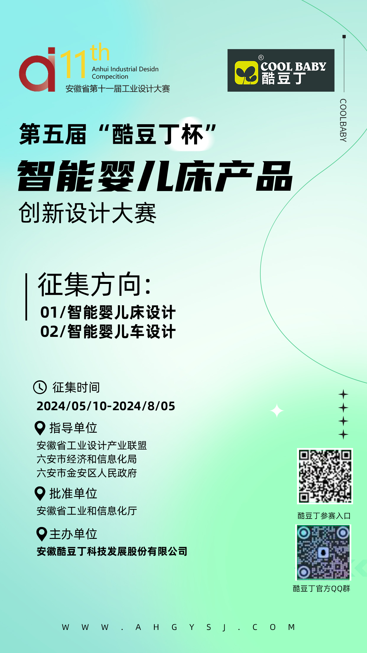第五屆“酷豆丁杯”智能嬰兒產(chǎn)品創(chuàng)新設(shè)計大賽是經(jīng)安徽省工業(yè)和信息化廳批準(zhǔn),在安徽省第十一屆工業(yè)設(shè)計大賽組委會(以下簡稱省賽組委會)指導(dǎo)、監(jiān)督下,由安徽酷豆丁科技發(fā)展股份有限公司主辦。該賽事是安徽省第十一屆工業(yè)設(shè)計大賽的有機(jī)組成部分,并組織參加省賽組委會相關(guān)活動。大賽在前四屆成功主辦的基礎(chǔ)上,將聚焦智能應(yīng)用新技術(shù)、新場景和新體驗,發(fā)掘具有創(chuàng)新價值和市場潛力的智能嬰兒產(chǎn)品設(shè)計方案。參賽者需結(jié)合市場趨勢、客戶畫像以及智能技術(shù)發(fā)展,設(shè)計出既實用又具備高科技感的時尚智能嬰兒車、嬰兒床產(chǎn)品。參賽作品應(yīng)體現(xiàn)創(chuàng)新價值元素,可以是智能服務(wù)、功能結(jié)構(gòu)、未來場景等方面的理念或應(yīng)用創(chuàng)新,以提升用戶體驗和市場競爭力。
