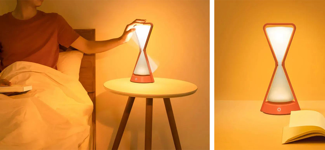 該款臺燈的外形設(shè)計(jì)參考傳統(tǒng)沙漏的形狀,當(dāng)旋轉(zhuǎn)臺燈的照明區(qū)域時(shí),燈光打開,同時(shí)沙漏也開始計(jì)時(shí)。