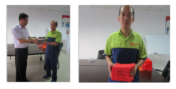 2016年12月26日,關(guān)工委副主任馮祥英,帶著公司10000元現(xiàn)金,看望裕安區(qū)韓擺渡鎮(zhèn)街道突發(fā)疾病的勞務職工周玲,其家屬感激萬分。