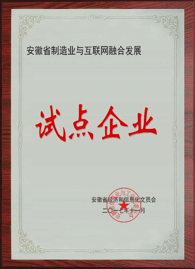 安徽省制造業(yè)與互聯(lián)網(wǎng)融合發(fā)展試點(diǎn)企業(yè)